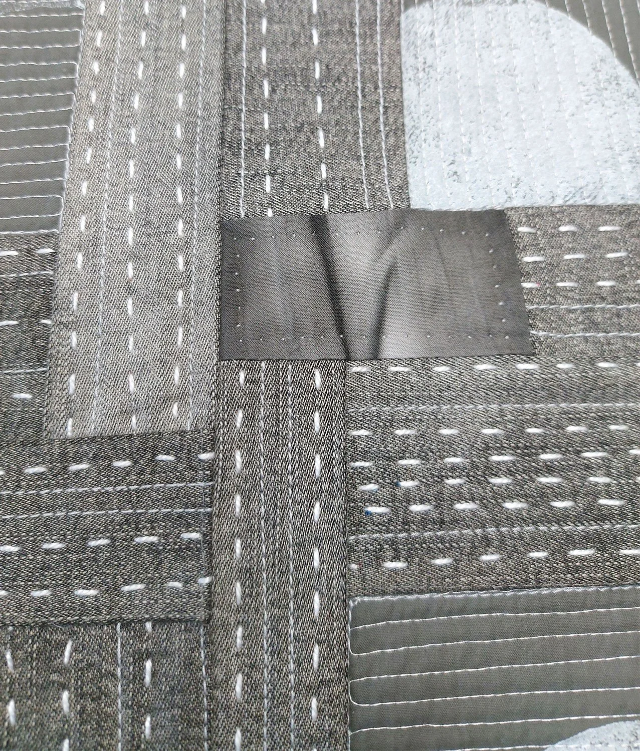 The surrounding strips are cut from a no longer fit for purpose pair of black/grey jeans.